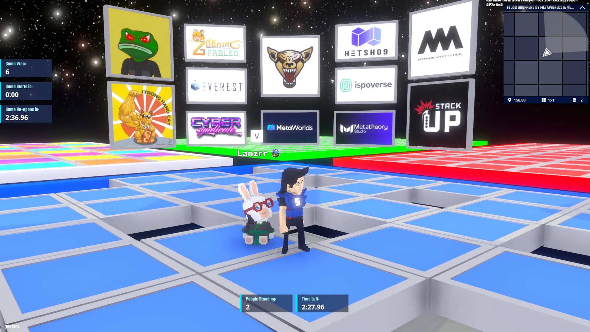 Do whatever it takes to keep from falling as the floor disappears beneath your feet! Floor Droppers is a highly competitive multiplayer game that was developed for MetaveWorlds. The game features looped mechanics with a range of difficulties to choose from.